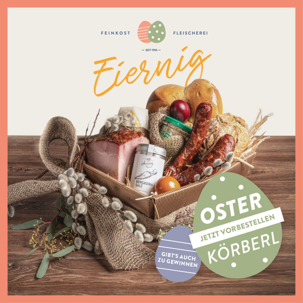 Gerne stellen wir euch auch einen individuellen Osterkorb nach Wunsch zusammen. Vorbestellen könnt ihr via Bestellformular, Telefon oder E-Mail. Eure Körberl werden Karfreitag und Ostersamstag frisch für euch vorbereitet!