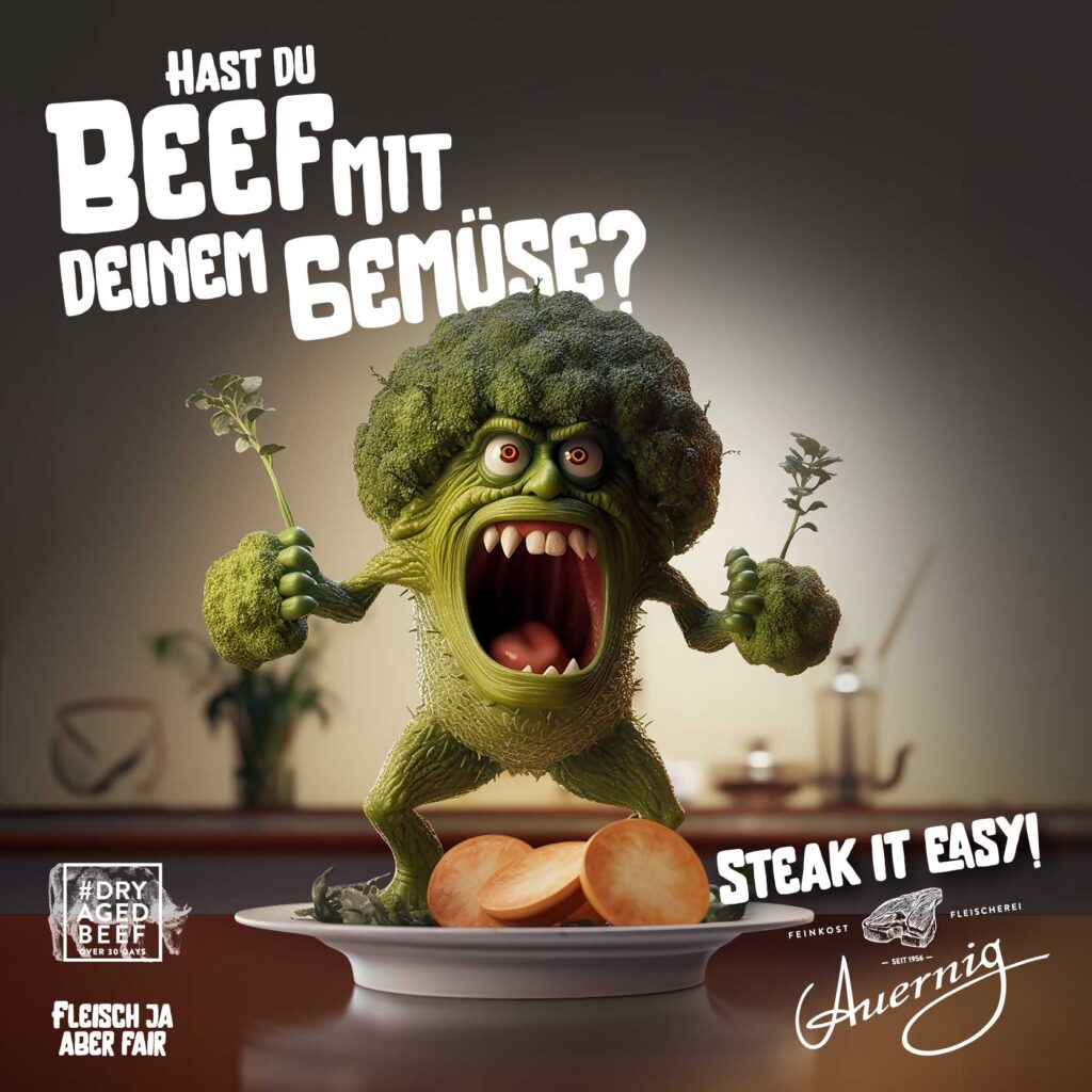 Als Feinkost Fleischerei befürworten wir eine gesunde und ausgewogene Ernährungsweise. Ein saftiges Stück Fleisch am Teller besänftigt dein Gemüsemonster, denn in Maßen verbringen die zwei gerne Zeit miteinander. Dabei achten wir nicht nur auf ausgezeichneten Geschmack, wir tragen unserer Gesellschaft und unseren Kunden gegenüber auch Verantwortung. Wichtig sind vor allem Herkunft und Qualität, schließlich soll es fair zu Tier und Umwelt sein.